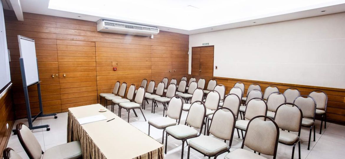 The event room counts with high-speed internet connection, screen and flipchart.